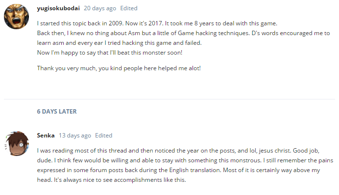 然后最近,故事的主人公回来了。他说从2009到2017,他花了8年的时间去研究这个游戏,从对Asm一窍不通到现在的无所不能,相当地正能量。Congratulations!