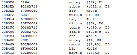 其中要注意的是,除法的计算结果要省略小数点后面,比如7/2=3,因为程序本来使用的是右位移,为了表示方便我写成了除法。